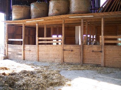 This is the view to the right with the graining station, which at the same time regulates access to the hay area.