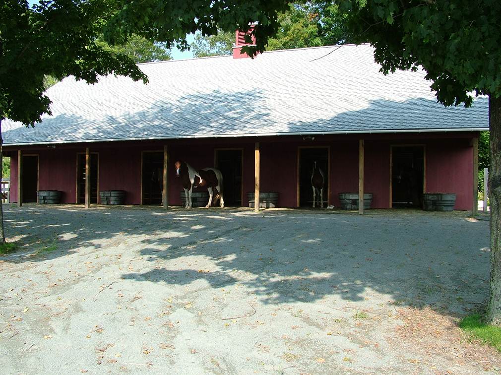 Six stall barn with a fenced in stone dust paddock for emergencies like severe icing, blizzards etc.