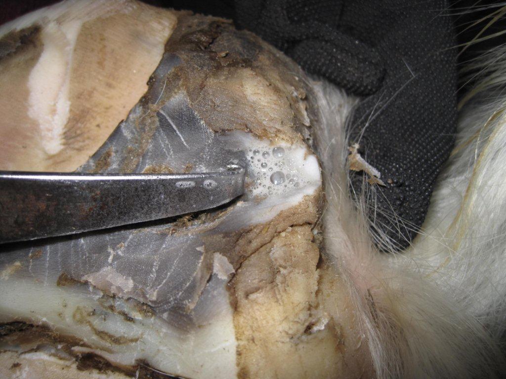Josephine Trott, PhD, Assistant Project Scientist, Department of Animal Science at the University of California, Davis, has been experimenting with and documenting her treatment procedure which included several different agents, amongst others No Thrush and Oxine AH. Here is in her words what occurred: