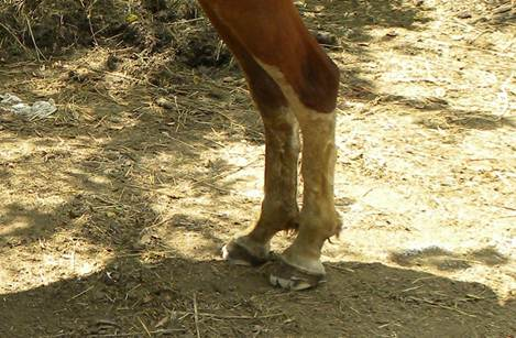 Meet Mr. TThis horse was trimmed by Randy Billinger, the same great guy who gave Cody his life back. Here the story in Randy’s words: He is one lucky horse as you will find out in this brief history of him. He was only a rain storm away from being euthanized. Mr. T. came to be owned by a couple who are good friends of mine, let’s call them L and G. They called me to come look at his feet and see if they could be repaired. But before we get to his feet, a little background on Mr. T. and how L and G came to own him as I understand it. This is told second hand and is information I received from my friends L and G. Mr. T. was purchased at a horse sale by a caring person, a friend of L and G's. Mr. T. was on a truck headed for slaughter; he was not yet 3 years old. I do not know if his feet were in bad shape at the time of this purchase. However, as it turns out the person who saved Mr. T. was very caring but not horse knowledgeable. Sometime in their ownership of Mr. T. (I do not know how long they owned him) they had his feet checked. I am told second hand that they were told by both a farrier and a vet that it would be best to euthanize him because his feet were so bad they could not be repaired. This owner did not have a place to bury Mr. T. so they contacted L and G to see if they could bury Mr. T. out on their ranch. L and G have numerous horses of their own and foster numerous others until they can be placed in permanent homes. L and G were told the horse had to be euthanized due to chronic hoof problems so they had a grave dug and prepared to receive Mr. T. As it turns out, a very large thunderstorm hit that night with heavy rain and filled the grave with water and mud. Mr. T. arrived the next morning, so L and G agreed to take in this horse and keep it at the ranch until something could be decided, thus saving Mr. T. for now. At this same time, I was busy working on rehabbing a burro named Cody that had hoof problems. A few weeks after finishing with Cody's first trim, there began to be some talk about Cody's trim on a local chat group that L and G were on. They contacted me and asked if I would come look at Mr. T. I did not know they had Mr. T. nor did they know I had started doing rehab work on hooves so it was just good luck that we hooked up. I agreed to take a look and after hearing what L and G had to say about his feet I told them I was sure they could be fixed. The photos below are what I found when I saw Mr. T. for the first time.