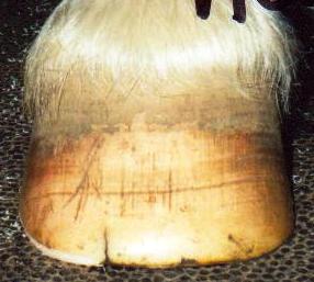 To this date, I have not figured out how one can totally prevent all these cracks from happening in the first place. For 3 years now, my horses have been on balanced minerals according to hay, soil and forage tests and on a low sugar and starch diet. Unless I am doing something very wrong in regard to amounts or there is another deficiency I have not yet detected, I don’t think it has anything to do with diet. It may be the environment. I used to live in Connecticut and did not have these particular hoof problems. The land my horses are on now has been farmed for many years and fertilized with cow manure. Since hoof rot is very prevalent in cows, I am wondering if these organisms could be present in the soil in large numbers. But then again, horses that don't live on grass have the same problems, and not just in wet environments. I have seen the same problems in horses that live in very arid conditions (Spain and Israel).
