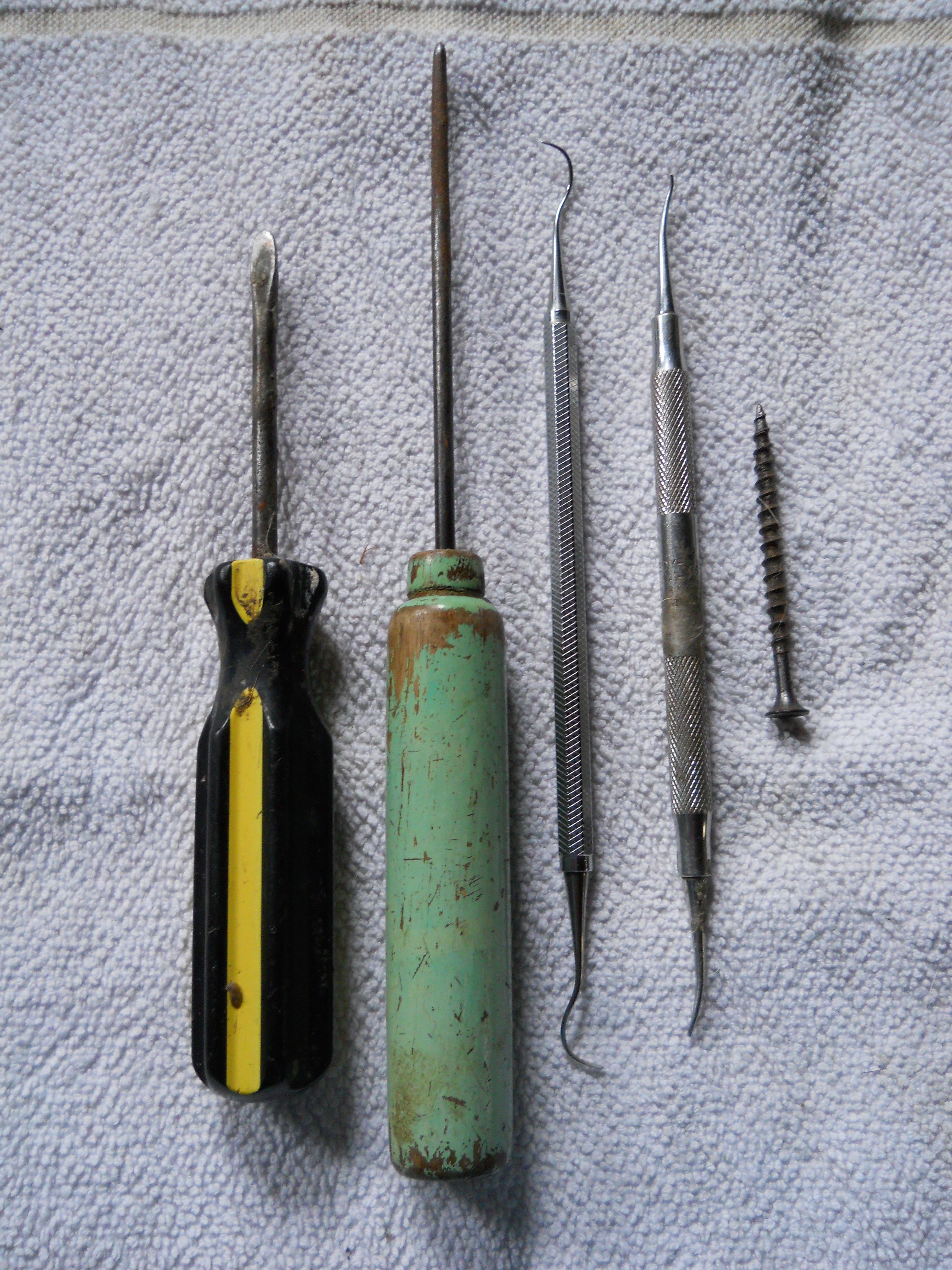 Fig. 7b shows investigating the depth of the crack with a dental probe. (I broke off the thin and sharp tip. What is left is a great tool for probing cracks.) I guess looks were very deceiving.