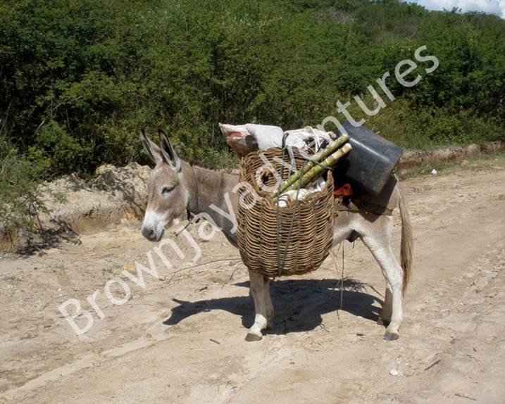 Donkey Beside the Road The area of Brazil was called Caatinga which was very arid and dry with cactus and many trees with thorns. Along this road to Boa Nova I saw horses, cows, donkeys and goats some had died at the side of the road which was very depressing to witness. My comments: while this donkey actually looks somewhat undernourished, this state is much healthier for them than the commonly seen obesity in pet donkeys. Again, note the perfectly worn hooves.