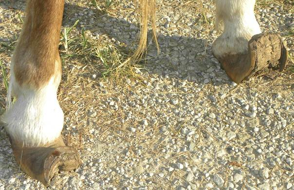 Foundered Pony TrimThis pony was trimmed by Randy Billinger, the same great guy who gave Cody his life back. Here the story in Randy’s words: I was asked to stop by and look at this pony to see if I could do anything for him. The owner had rescued the pony from another location. She has hoof care knowledge (she is a practicing farrier) but admitted she did not know how to properly trim the back hooves. The pony is in his late 20's to 30 years old. Below are photos of the all his feet. As you can see, the fronts had some care, but the backs were severely neglected.