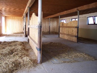 This is the view to the right with the graining station, which at the same time regulates access to the hay area.