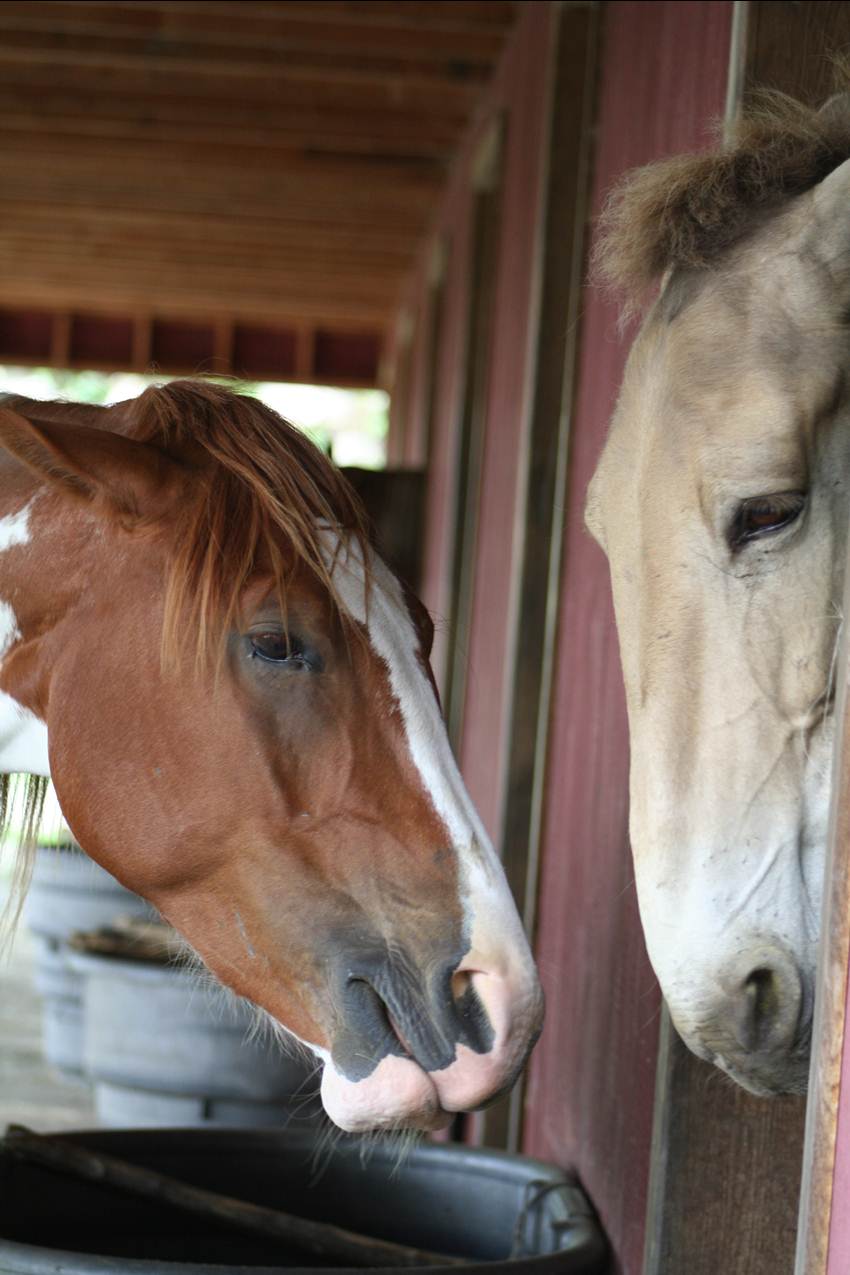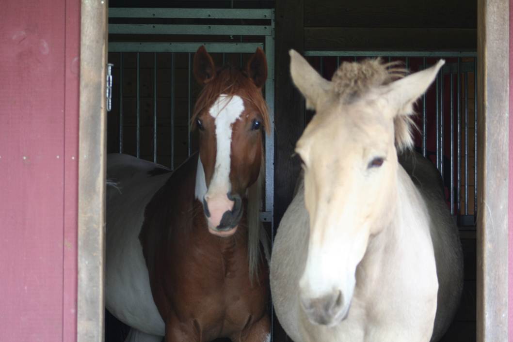 Stall side of the barn, doors always open except maybe for feeding supplements or emergencies.
