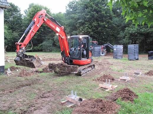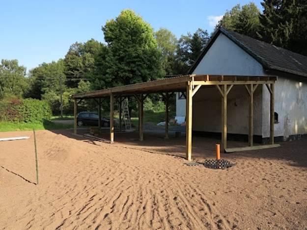 At this point I was absolutely done and could have happily hidden in my bed under the duvet. But the worst was yet to come. The top layer was being delivered. 90 tons of pea gravel that had to be spread exclusively by hand, as the first two layers could not be driven on yet with a tractor. At the same time the temperature went up to 100F, and Jan and Stefan could not help because they had to work at their regular jobs. That left Ottmar for hauling the pea gravel with his tractor to the edge of the dry lot, while truck after truck was unloaded at the edge of our property. That evening we had little mountains of gravel around the dry lot, and days ahead of shovelling into wheel barrows and spreading it. It's amazing how you can shovel and pant and sweat, and when you look up there seems to be just as much gravel in front of you as before!!