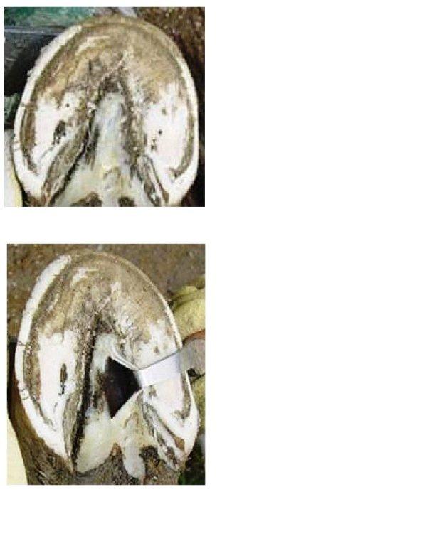 Fig. 41 shows an example of what can happen when the frog/heel junction is not healthy. The disease process can progress all the way to the coronary band. This picture is quite dramatic but the same process can be much more subtle, and often goes unrecognized as a possible cause of lameness, chronic infection or poor hoof/frog conformation.